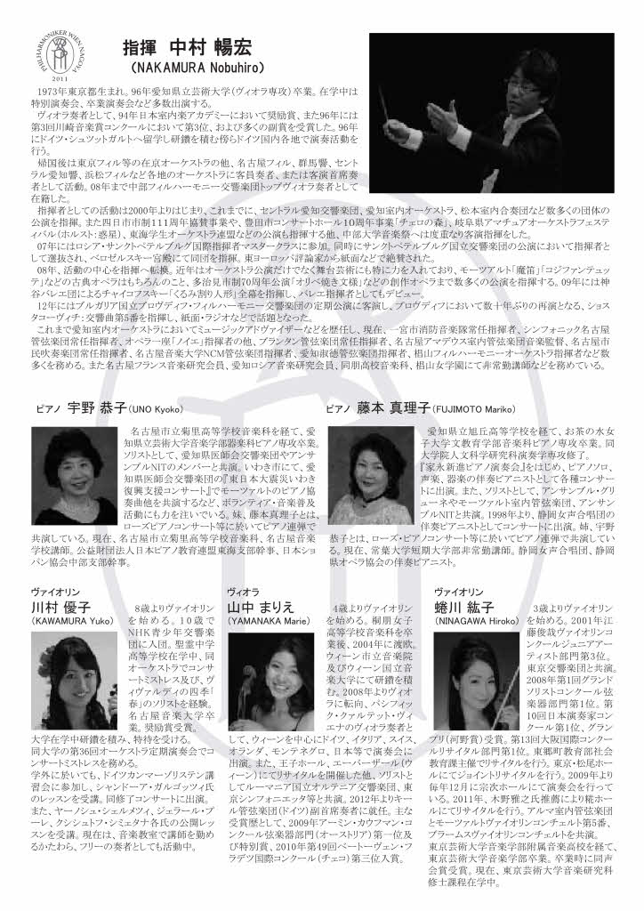 指揮:中村 暢宏/独奏:宇野恭子(1)、藤本真理子(1)、川村優子(2)、山中まりえ(3)、蜻川紘子(4)