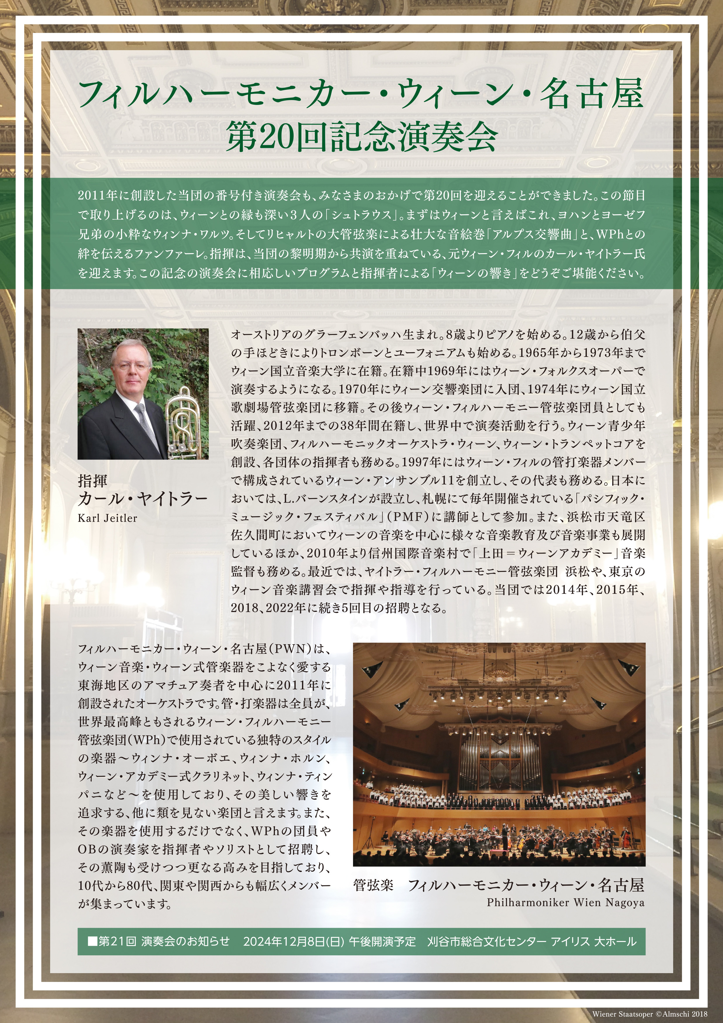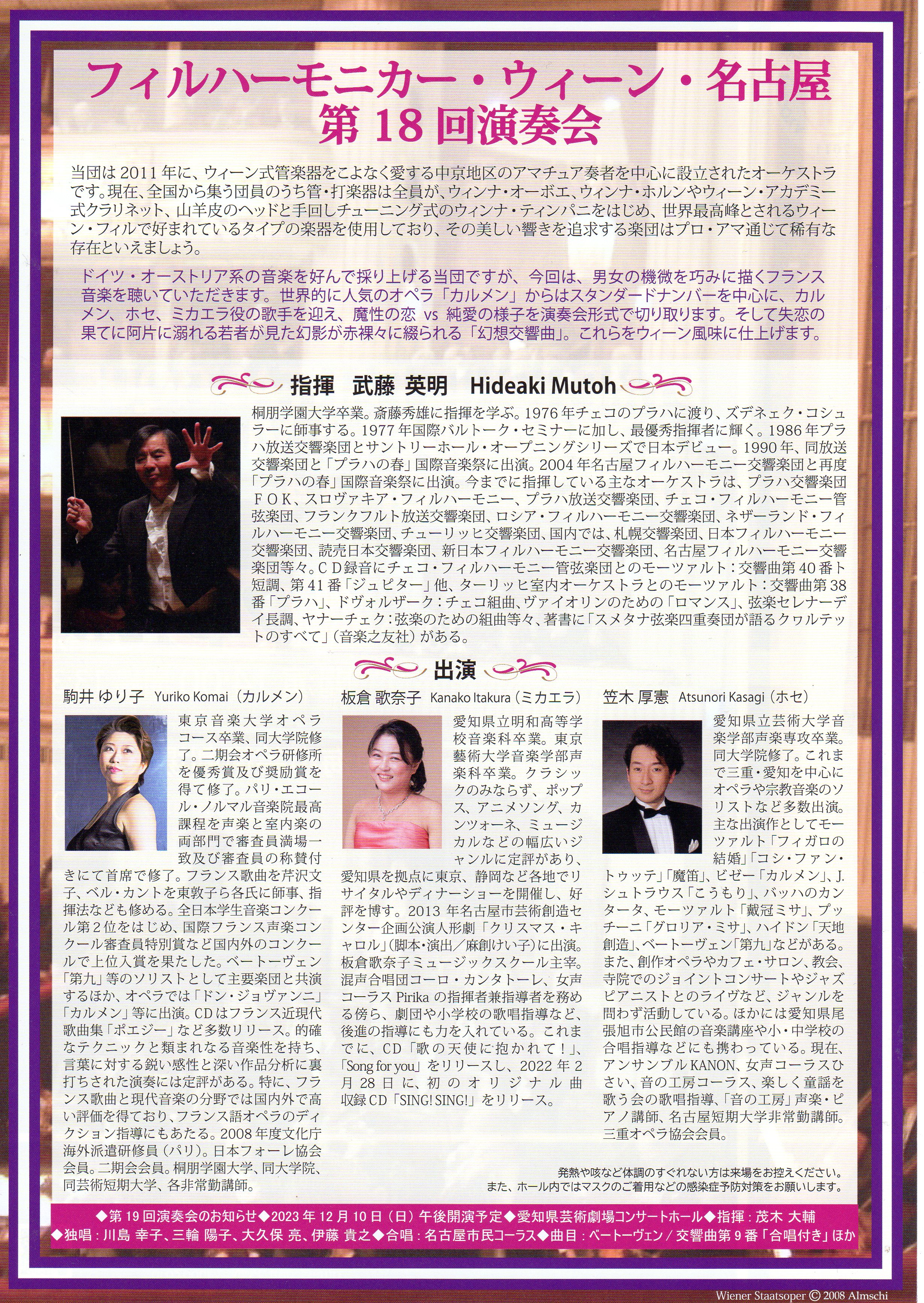 Philharmoniker Wien Nagoya(フィルハーモニカー・ウィーン・名古屋)のこれまでの演奏会をご紹介いたします。※印はアンコール