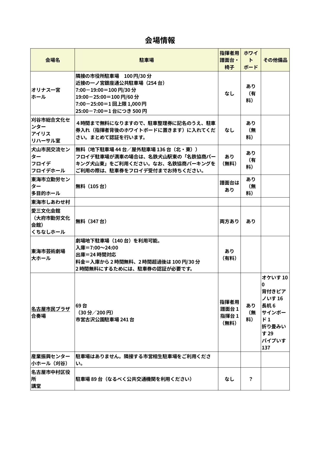 練習会場情報